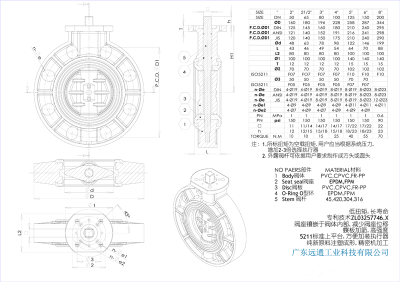 氣動塑料蝶閥產(chǎn)品規(guī)格(單位: MM)